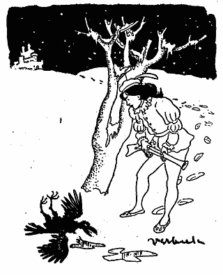 He said to himself: "I'll never rest till I get a wife whose hair is as black as that crow, whose cheeks are as red as that blood, and whose skin is as white as that snow."