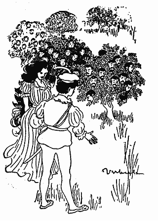 "There's one bush without a flower yet, Jack," says she, "but in less than three days I hope to see your head flowering on it."