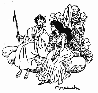 Then the servants quickly brought word to the Princess of the East of the beautiful and rich gentleman who had come, with his servant, to court her. They told her how they had both leaped the castle walls on horses shod with gold, and that they threw away their gold in handfuls.