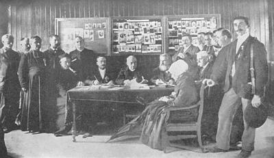I shall describe all this later, and more in detail; it is enough just now to say that the Blessed Sacrament went round, that It was carried at last to the steps of the Rosary Church, and that, after the singing of the Tantum Ergo by that enormous crowd, Benediction was given. Then the Bureau began to fill, and I turned round for the scientific aspect of the affair.