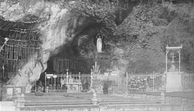AFTER déjeûner I set out again to find the Scottish priest, who hoped to be able to take me to a certain window in the Rosary Church, where only a few were admitted, from which we might view the procession and the Blessing of the Sick. But we were disappointed; and, after a certain amount of scheming, we managed to get a position at the back of the crowd on the top of the church steps. I was able to climb up a few inches above the others, and secured a very tolerable view of the whole scene.