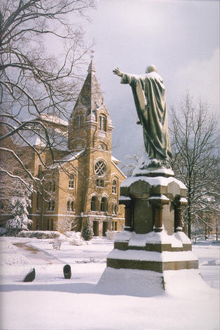 Sacred Heart Statue Washington Hall in the background