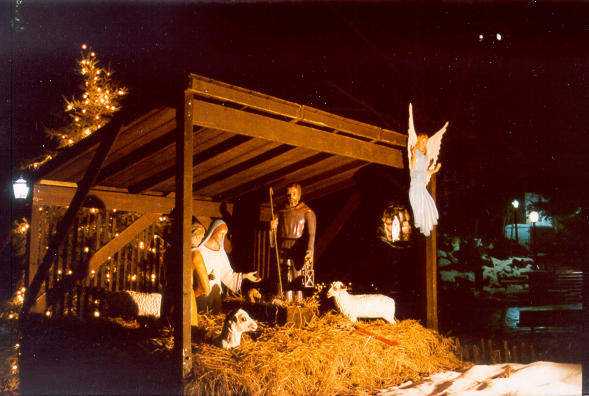 Manger at the Grotto Baby Jesus is placed in the manger on Christmas Eve.