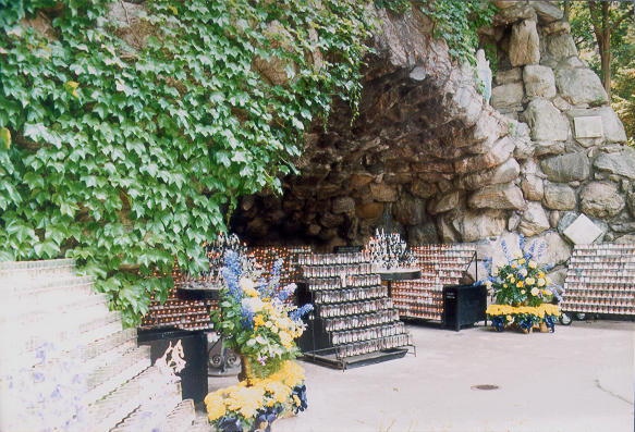 Ivy Covered Grotto Filled with candles and flowers for a special occasion