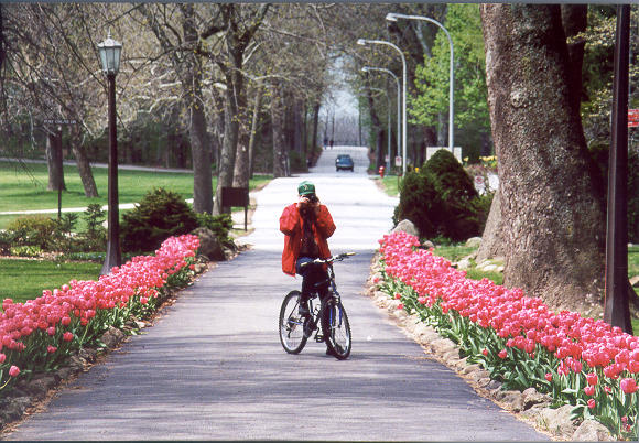 Tulip-bordered path to the Grotto