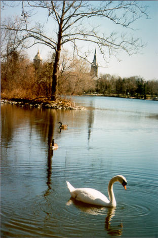 Swan and geese in St. Mary's Lake