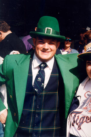 Leprachaun posing for pictures with fans