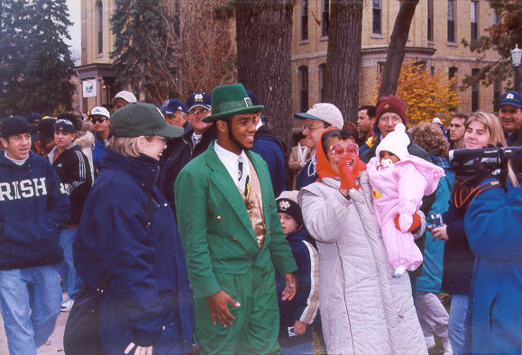 Leprechaun mingling with the campus crowd before the game