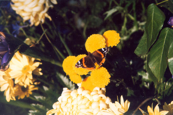 Red Admiral butterfly in a flowering garden