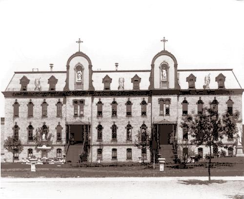 In Father Walsh's day Notre Dame was considered as a place where one might begin his education at five or six years of age, and complete it after the attainment of a Bachelor's degree in one of the various colleges. Both he and Sorin had a very great affection for young children, and early provided for them an education under the Sisters of the Holy Cross. Those between the ages of six and thirteen were called Minims. Up until the great fire of 1879, they were housed in the Main Building. But with the growth of the University which followed upon Father Walsh's inauguration, it was felt that they must have a place to themselves. In the summer of 1882, accordingly, the University began the erection of what at first was known as "Minims' Hall." The Minims had also a four-acre play field to the rear of the building and an adjoining play hall used during inclement weather. In front, they had a small park or garden with a statue of Saint Edward, Father Sorin's patron saint. The Minims were Father Sorin's favorite group, and he called them his "Princes," and their hall, the "Palace." He encouraged them to bring new students by offering prizes and once more promised a royal Parisian dinner to celebrate the arrival of the one-hundredth Minim. The dinner took place on November 24, 1883, following the arrival of Edward Sorin Ewing, of Lancaster, Ohio. Sorin invited all the parents to come for the celebration, and he himself wrote a play called "The New Arts," which was performed by the Minims before the banquet. The growth of this department in the eighties was such as to require the addition of a wing to the east of the hall, and that was erected in 1887 to help house the two hundred boys in attendance that year.